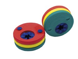 Hautfreundliche Polyethylen-Schaumstoff-Schwimmscheiben werden am Oberarm getragen und haben gegenüber Schwimmflügeln den Vorteil, dass für den Auftrieb mehrere Schaumstoffscheiben gewichtsabhängig angelegt werden können. Die Schwimmscheiben lassen sich durch Verringerung der Scheibenanzahl auf die fortschreitende Schwimmfähigkeit abstimmen. Schwimmscheiben sind ab dem ersten Lebensjahr zu empfehlen und für tiefes Wasser ideal.